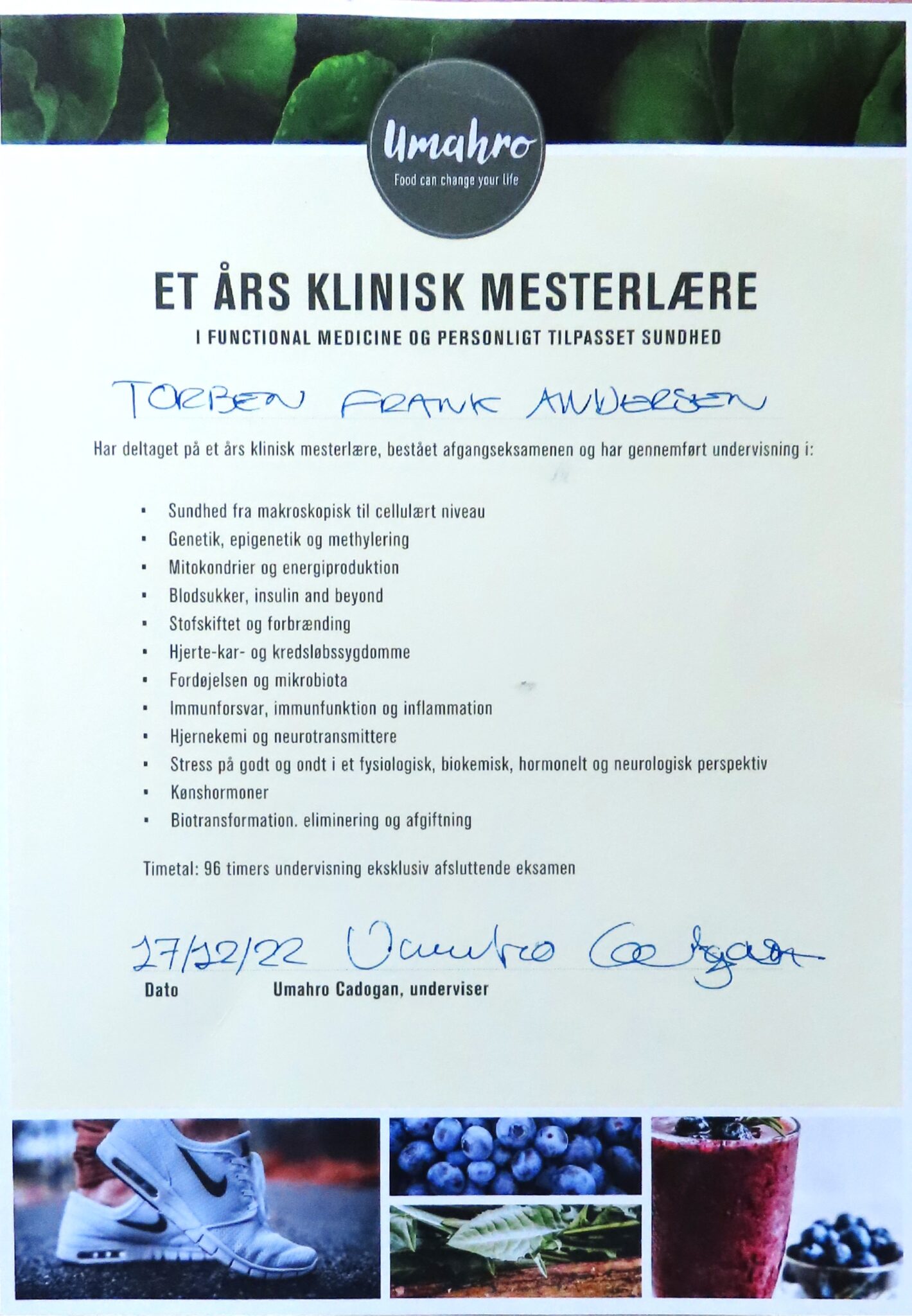 - Klinisk mesterlære i funktionel medicin ved Umahro Cadogan (2021)